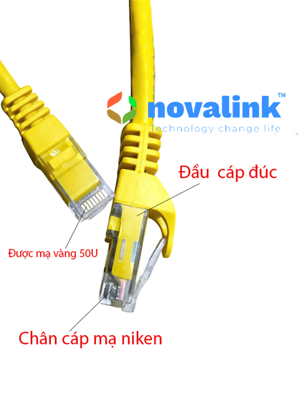 Dây nhảy mạng Cat6 dài 1.5M Novalink NV-21103A | 24AWG | 550MHz | Màu vàng chính hãng