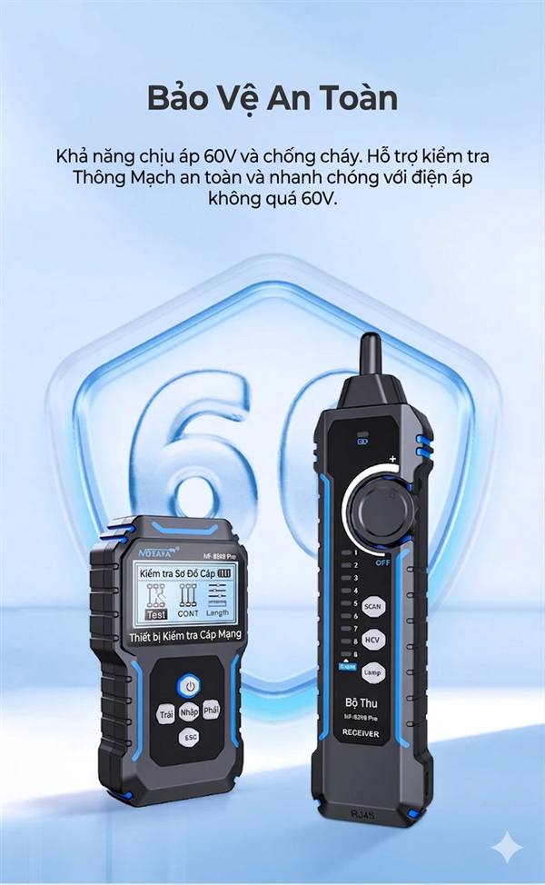Máy test cáp mạng NF-8209 Pro là lựa chọn lý tưởng cho kỹ thuật viên cần thiết bị test PoE NCV, dò dây và đo chiều dài cáp chính xác, đáp ứng mọi nhu cầu thi công mạng chuyên nghiệp.