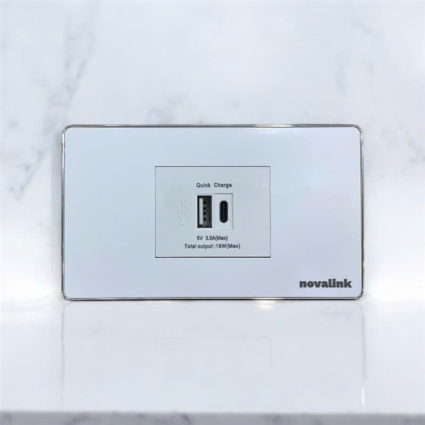 Combo Ổ cắm sạc điện thoại âm tường, âm bàn Sinoamigo USB Type-A và USB Type-C P21-QC1 chính hãng