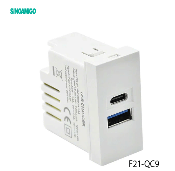 🔌 Hạt Ổ Cắm Sạc USB Type A+C Sinoamigo F21-QC9 – Chính Hãng Cao Cấp