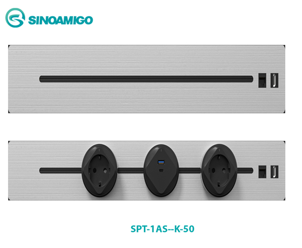 Thanh ray lắp điện âm bàn Sinoamigo SPT-1AS-50-K là lựa chọn lý tưởng cho những không gian làm việc cao cấp, nơi công nghệ và tính thẩm mỹ được kết hợp hoàn hảo.
